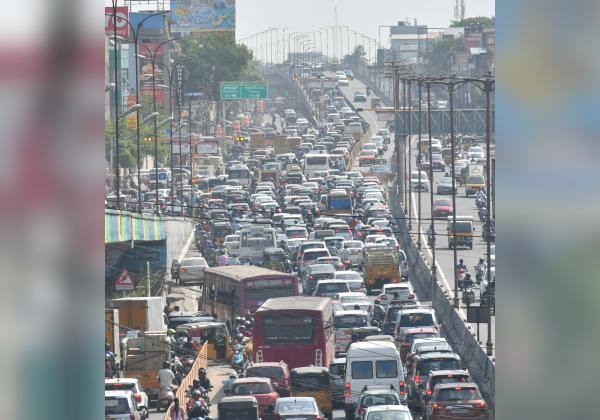 பல்லாவரம் ஜி.எஸ்.டி., சாலையில் காலை நேரங்களில் ஏற்படும் போக்குவரத்து நெரிசலில் சிக்கி ஊர்ந்து செல்லும் வாகனங்கள்.