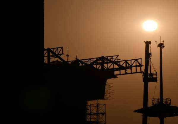 அந்தி சாயும் வேளையில் சென்னை, கிண்டி கத்திப்பாரா பகுதியில் மெட்ரோ தூண்கள் அமைக்கும் பணியில் ஈடுபட்டுள்ள ஊழியர்கள்.