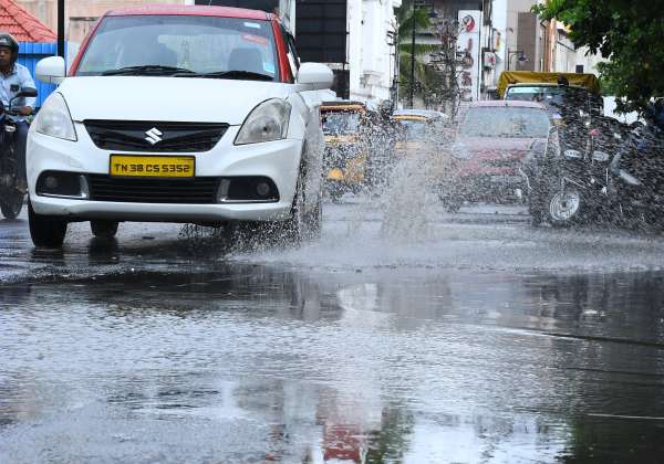 கோவையில் பல்வேறு இடங்களில் பெய்த மழையில் சாலைகளில் தேங்கிய மழை நீர். இடம்: கிராஸ்கட் ரோடு.