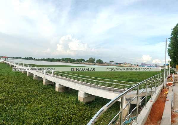 திருநெல்வேலி டவுன் நெல்லையப்பர் கோயில் அருகே நயினார்குளத்தில் ஸ்மார்ட் சிட்டி திட்டத்தின் கீழ் ரம்மியான சூழல் நடை பூங்கா உருவாகி வருகிறது.