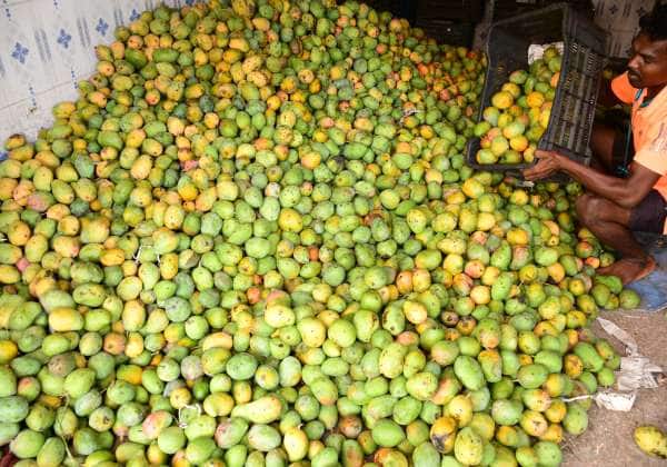 மாம்பழம் வரத்து அதிகரித்துள்ளது.! மாம்பழம் சீசன் தற்போது அதிகரித்துள்ளதால் பல மாவட்டங்களில் இருந்து கோவைக்கு அதன் வருகை அதிகரித்துள்ளது. தங்கள் குடோனில் உள்ள மாம்பழங்களை தரம் பிரிக்கும் பணியில் ஈடுபட்டுள்ள ஊழியர்.