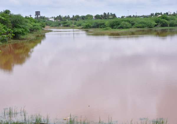 மழை காரணமாக சிவகங்கை காஞ்சிரங்கால் கண்மாயில் தண்ணீர் பெருகியது.