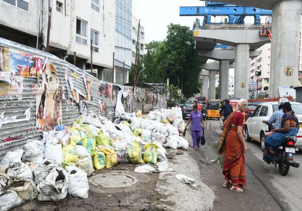வடபழனி ஆற்காடு சாலையில் நடைபாதைகளில் உள்ள மழை நீர் வடிகால் குழியில் தூர்வாரப்பட்ட கழிவுகளை பைகளில் அடைக்கப்பட்டு நடைபாதையில் குவிக்கப்பட்டுள்ளது இதனால் நடைபாதை மீது நடப்பவர்கள் சாலையில் நடந்து செல்கின்றனர்