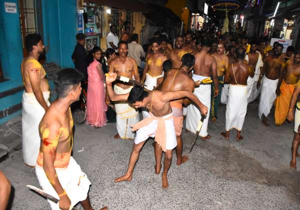 கடலூர் துறைமுகம் ராமனாதீஸ்வரர் சவுடாம்பிகை அம்மன் கோவிலில் கத்தி போடும் நிகழ்வு நடந்தது