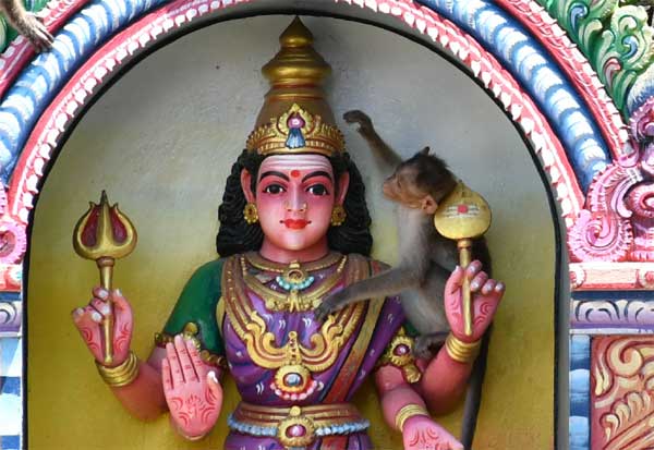 கடவுளிடம் பாசத்தை வெளிப்படுத்துகிறதா இந்த குரங்கு. இடம்: பச்சையம்மன் கோயில் குளம், திருவண்ணாமலை