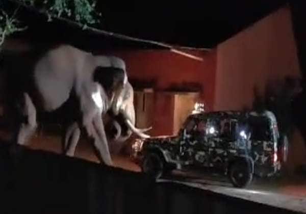 காட்டு யானை பாகுபலி மேட்டுப்பாளையம் குடியிருப்பு பகுதிகளில் நுழைந்ததை அடுத்து வனத்துறையினர் ஜீப் மூலம் விரட்டியடித்தனர்.