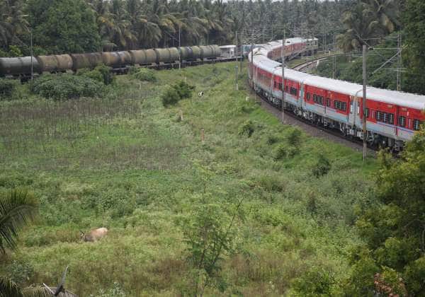 ரயில் பயணம். இடம்: கோவை, நஞ்சுண்டாபுரம் - போத்தனூர் சாலை.