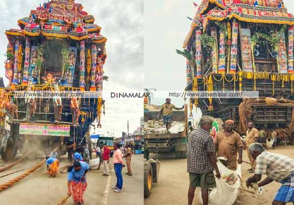 திருநெல்வேலி நெல்லையப்பர் கோயில் தேரோடிய வீதிகளில் ஒரே நாளில் 110 தூய்மை பணியாளர்கள் 55 டன் குப்பைகளை அகற்றினர் என மாநகராட்சி கமிஷனர் தாக்கரே தெரிவித்தார்.