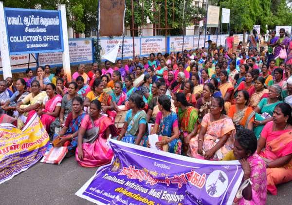 சிவகங்கையில் தமிழக சத்துணவு ஊழியர் சங்கம் சார்பில் பல்வேறு கோரிக்கையை வலியுறுத்தி ஆர்ப்பாட்டம் செய்தனர்.