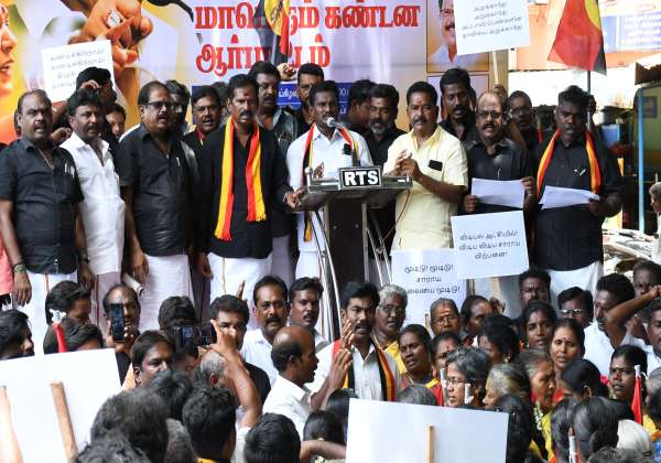 கடலூர் தலைமை தபால் நிலையம் அருகில் தே.மு.தி.க.சார்பில் போதைப்பொருளை கட்டுப்படுத்தாத தி.மு.க.,அரசை கண்டித்து மாவட்டச் செயலாளர் சிவக்கொழுந்து தலைமையில் ஆர்ப்பாட்டம் நடந்தது