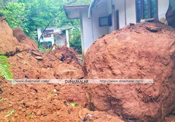 நீலகிரி மாவட்டம் பந்தலூர் அருகே புத்தூர்வயல் பகுதியில் வார்டு உறுப்பினர் அன்வர்சாஜி வீட்டின் பின்பகுதியில் பாறை விழுந்து பாதிப்பு.