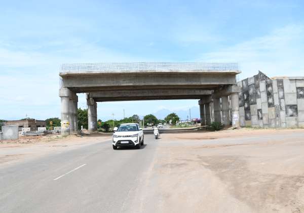 உடுமலை - திருப்பூர் ரோட்டில் நான்கு வழி சாலைக்காக பாலம் கட்டும் பணி பாதியிலேயே நிற்கிறது.