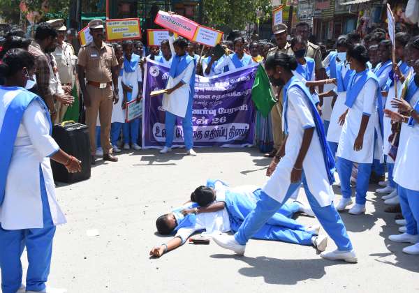 திண்டிவனம் மகாத்மா மது போதை மறுவாழ்வு மையம் மற்றும் அன்னை சமுதாயக் கல்லூரி இணைந்து உலக போதை எதிர்ப்பு தினத்தையொட்டி விழிப்புணர்வு கலை நிகழ்ச்சி நடந்தது.