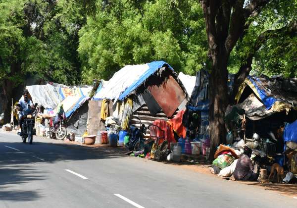 படப்பை அருகே கரசங்கல் பகுதியில் சாலையோரம் வசிக்கும் நரிக்குறவர்கள்.