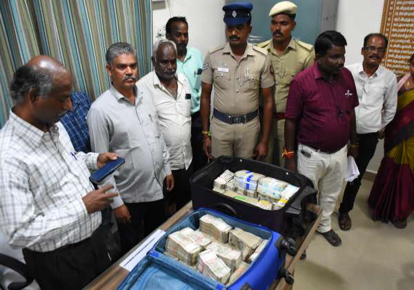 விக்கிரவாண்டி இடைத்தேர்தலை முன்னிட்டு பறக்கும் படை சோதனையில் காரில் இருந்து ஒரு கோடி ரூபாய் பறிமுதல் செய்து விழுப்புரம் மாவட்ட கருவவூல அலுவலகத்தில் ஒப்படைத்தனர்.