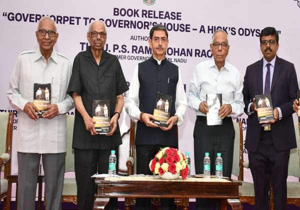 தமிழக முன்னாள் கவர்னர் ராமமோகன் ராவ் எழுதிய கவர்னர்பேட் டூ கவர்னர் ஹவுஸ் எனும் நூல் வெளியீட்டு விழா சென்னை கவர்னர் மாளிகையில் நடந்தது இதில் நூலினை வெளியிட்ட தமிழக கவர்னர் ரவி உடன் இடமிருந்து நூலின் ஆசிரியர் ராமமோகன் ராவ், ஆந்திரா முன்னாள் கவர்னர் ரங்கராஜன், மேற்கு வங்க முன்னாள் கவர்னர் நாராயணன், கவர்னர் செயலர் கிர்லோஷ் குமார்.இடம் : கிண்டி.