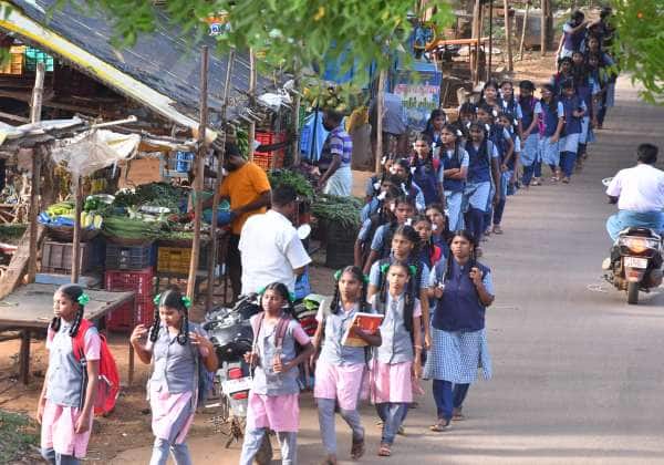 சிவகங்கை ஆயுதப்படை குடியிருப்பு அருகே விடுதி பள்ளி மாணவிகளுக்கு பஸ் வசதி இன்றி நடந்தே பள்ளிக்குச் செல்கின்றனர்.