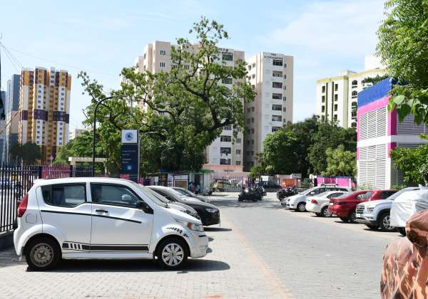 சைதாப்பேட்டை மெட்ரோ ரயில் வாகனம் நிறுத்தும் இடத்தில் நெருக்கடியுடன் வாகனங்கள் நிறுத்தி வைக்கப்பட்டுள்ளது