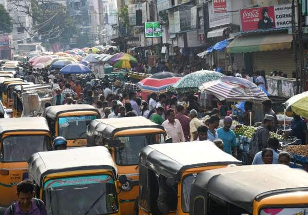 தீபாவளி பண்டிகை ஒட்டி கோவை பெரிய கடை வீதியில் புத்தாடை வாங்க குவிந்த மக்கள்.