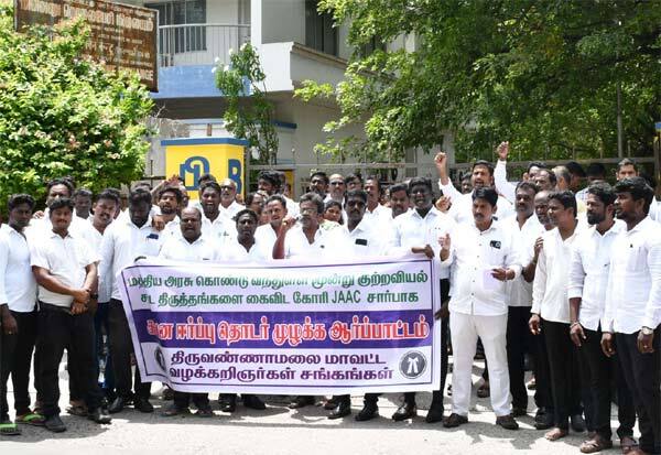 மூன்று குற்றவியல் சட்ட திருத்தங்களை கைவிடக் கோரி, அனைத்து வழக்கறிஞர்கள் சங்கம் சார்பில் ஆர்ப்பாட்டம் நடந்தது. இடம்: திருவண்ணாமலை