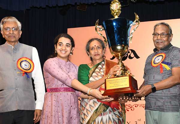 லட்சுமணன் கார்த்திக் பைன் ஆர்ட்ஸ் நிறுவனர் ராஜகோபாலின் நூற்றாண்டு விழாவில், இளம் நாடக இயக்குனர் ஷ்ருதி உருவாக்கியுள்ள, ராஜகோபால் நுாற்றாண்டு நினைவு சுழற்கோப்பையை, நாடக இயக்குனர் கீதா நாராயணனுக்கு, திரைப்பட நடிகர் மவுலி வழங்கினார் உடன் கார்த்திக் பைன் ஆர்ட்ஸ் தலைவர் கார்த்திக். இடம்: மயிலாப்பூர்.