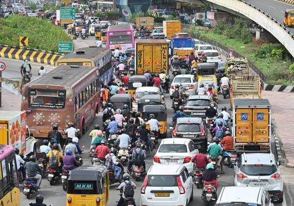 போக்குவரத்து நெரிசலில் சிக்கி தவிக்கும் வாகன ஓட்டிகள். இடம்: கோயம்பேடு