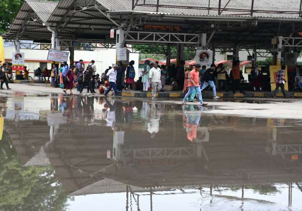 சென்னையில் பெய்த பலத்த மழையினால் வடபழனி பேருந்து நிலையத்தில் தேங்கிய மழை நீரால் பயணிகள் அவதி அடைந்தனர்.
