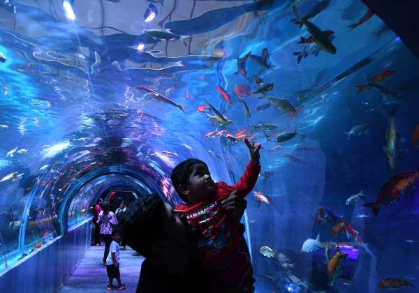 தனியார் நிறுவனம் சார்பில் சென்னை ஓ.எம்.ஆரில் மெரைன் எக்ஸ்போ நடந்து வருகிறது இதில் இடம்பெற்ற மீன் கண்காட்சியை ஆர்வமுடன் பார்த்து ரசிக்கும் பொதுமக்கள். இடம் : ஒய்.எம்.சி. எ மைதானம், கொட்டிவாக்கம்.
