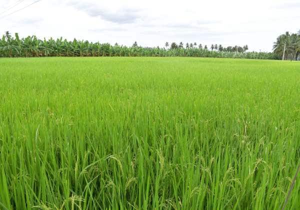 ஸ்ரீவில்லிபுத்தூர் அருகே மம்சாபுரத்தில் பசுமையாக காட்சியளிக்கும் நெற்கதிர்கள்.