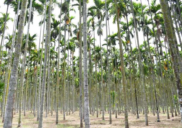 உடுமலை ராவணாபுரத்தில் வளர்ந்து காணப்படும் பாக்கு மரங்கள்.