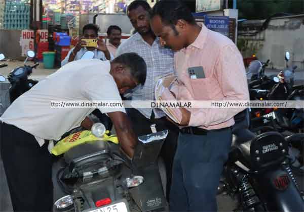 திருவண்ணாமலை வேட்டவலம் சாலையில் உள்ள ரிஜிஸ்டர் அலுவலகத்தில் நடந்த சோதனையில் ஊழியர்கள் இருசக்கர வாகனங்களை லஞ்ச ஒழிப்புத்துறை போலீசார் சோதனை செய்தனர்