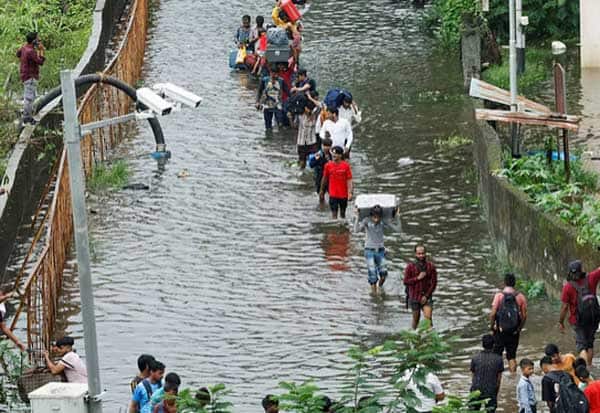 மும்பையில் பெய்த பலத்த மழையில் பல நகர்களில் மழை நீர் தேங்கி குளம் போல் காட்சி அளிக்கிறது.