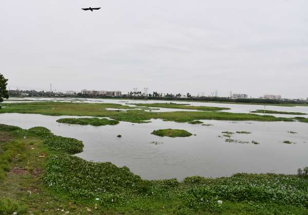 சென்னை கொரட்டூர் ஏரியின் நீரின் அளவு குறைந்து காணப்படுகிறது.