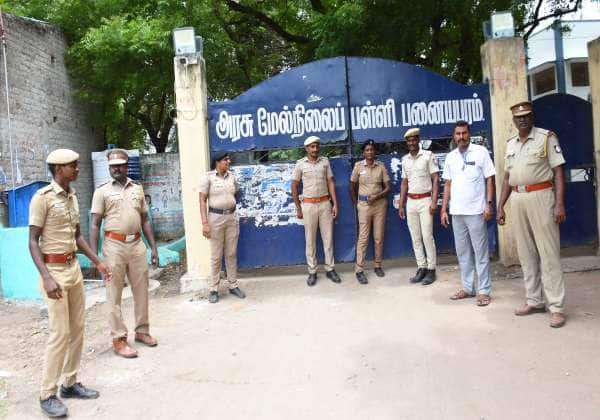 விழுப்புரம் விக்கிரவாண்டி தொகுதி இடைத்தேர்தலை முன்னிட்டு பனையபுரம் அரசு மேல்நிலைப் பள்ளியில் ஓட்டு எண்ணும் மையம் முன்பு போலீஸ் பாதுகாப்பு போடப்பட்டுள்ளது.