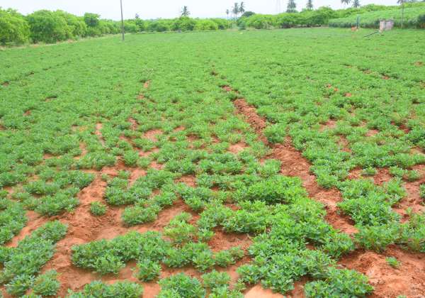விருத்தாசலம் அடுத்த ஆலடி பகுதியில், சாகுபடி செய்யப்பட்டுள்ள வேர்க்கடலை செடிகள் செழிப்பாக வளர்ந்துள்ளன.