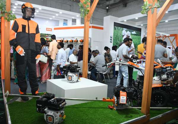 கோவை கொடிசியா அரங்கில் நடந்த அக்ரி இன்டெக் 2024 கண்காட்சியில் இடம் பெற்றுள்ள அரங்கை பார்வையிட்ட விவசாயிகள்.
