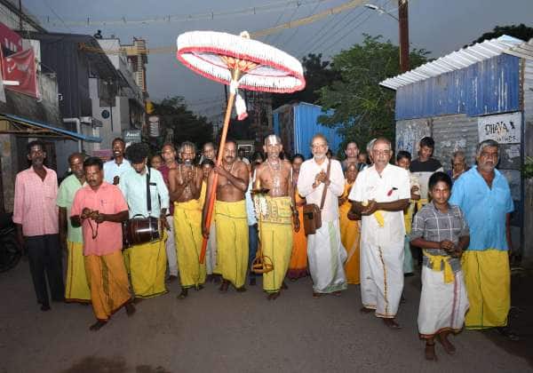 விழுப்புரம் கீழ்பெரும்பாக்கத்தில் உள்ள ஸ்ரீதேவி பூதேவி சமேத ஆனந்த வரதராஜ பெருமாள் கோவிலுக்கு விஸ்வஹிந்து பரிஷத் அமைப்பு சார்பில் வந்த திருப்பதி கொடை பொதுமக்கள் மத்தியில் ஊர்வலமாக கொண்டு செல்லப்பட்டது.