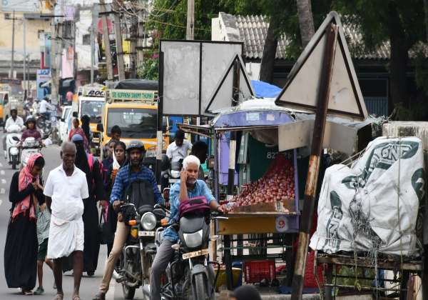 திருப்பூர், காங்கயம் ரோட்டில் ஆகிரமிப்பு கடைகளால் விபத்து ஏற்படும் அபாயம் உள்ளது.