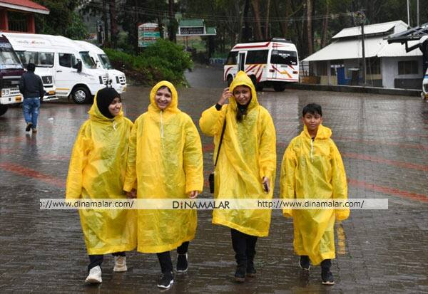 கனமழையிலும் ரெயின்கோட் அணிந்து, ஊட்டி படகு இல்லத்தை ரசிக்க வந்த சுற்றுலா பயணிகள் .