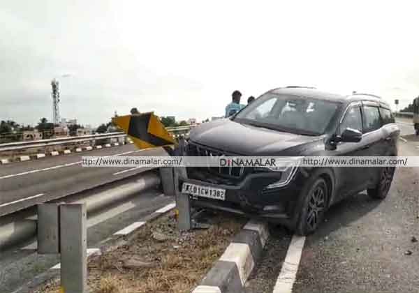 திருவனந்தபுரத்தை சேர்ந்த வினோத் 53, என்பவர் குடும்பத்தினருடன் காரில் வந்தபோது கோவில்பட்டி இனாம் மணியாச்சி அருகே நான்கு வழிச்சாலை தடுப்புச் சுவரில் மோதி விபத்துக்கானது. வினோத் குடும்பத்தினர் காயங்களுடன் உயிர் தப்பினர்.