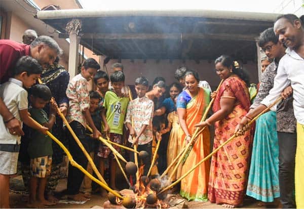 ஆடிப்பிறப்பையொட்டி சேலத்தில், தேங்காய் சுடும் நிகழ்ச்சி நடந்தது. கொண்டலாம்பட்டி பகுதியில் பொதுமக்கள் தங்களது குழந்தைகளுடன் தேங்காய்களை நெருப்பில் சுட்டனர்.