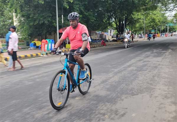திருவண்ணாமலை கிரிவலப்பாதையில்சைக்கிளில் சென்ற கலெக்டர் பாஸ்கர பாண்டியன்.