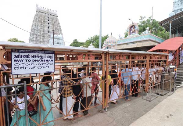 திருவண்ணாமலை அருணாசலேஸ்வரர் கோயிலில், சுவாமி தரிசனம் செய்ய நீண்ட வரிசையில் காத்திருந்த ஏராளமான பக்தர்கள்.
