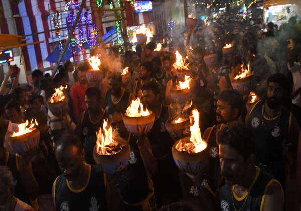 பெரியகுளம் கவுமாரியம்மன் கோயில் ஆனித்திருவிழாவை முன்னிட்டு அக்னி சட்டி எடுத்து வந்த பக்தர்கள்.