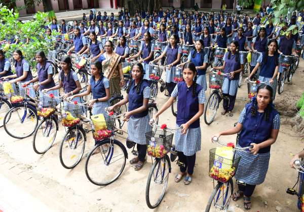 சென்னை சைதாப்பேட்டையில் உள்ள சென்னை பெண்கள் மேல்நிலைப் பள்ளியில் 11ம் வகுப்பு பயிலும் மாணவர்களுக்கு அரசு வழங்கும் இலவச மிதிவண்டிகளை அமைச்சர் ராஜ கண்ணப்பன் மற்றும் மா. சுப்ரமணியன் ஆகியோர் மாணவர்களுக்கு வழங்கினார்கள். இடம். சைதாப்பேட்டை
