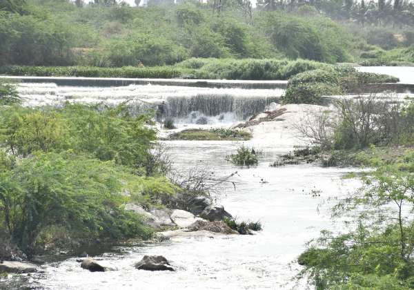 திருப்பூர், நொய்யல் ஆற்றில் ஆர்பரித்து செல்லும் வெள்ள நீர்.