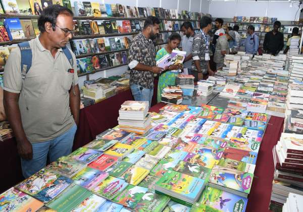 கோவை கொடிசியா அரங்கில் நடந்த புத்தக கண்காட்சியில் இடம்பெற்றுள்ள புத்தகங்களை பார்வையிட்ட மக்கள்.