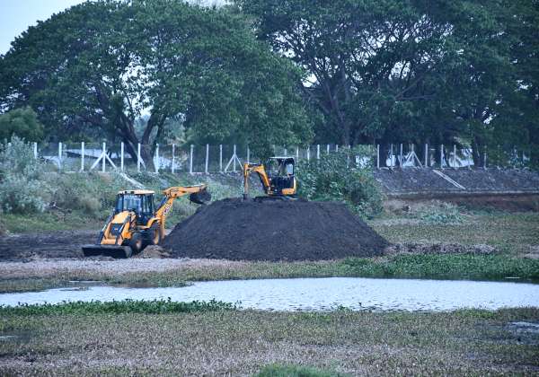 கோவை குனியமுத்தூர் செங்குளம் கரை நீர் கசிவை தடுப்பதற்காக பொக்லைன் இயந்திரம் கொண்டு பலப்படுத்தும் பணி நடந்து வருகிறது.