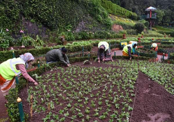 ஊட்டி தாவரவியல் பூங்காவில், இரண்டாம் சீசனுக்காக மலர் நாற்றுக்கள் நடவு பணி. துவங்கியது.