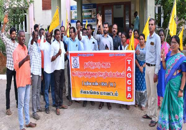 சிவகங்கையில் தமிழக அரசு கூட்டுறவுத்துறை ஊழியர் சங்கம் சார்பில் பல்வேறு கோரிக்கையை வலியுறுத்தி ஆர்ப்பாட்டம் செய்தனர்.